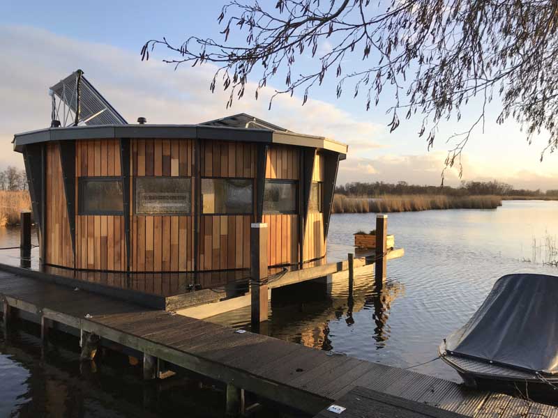 Uniek drijvend rond huisje met panoramisch uitzicht