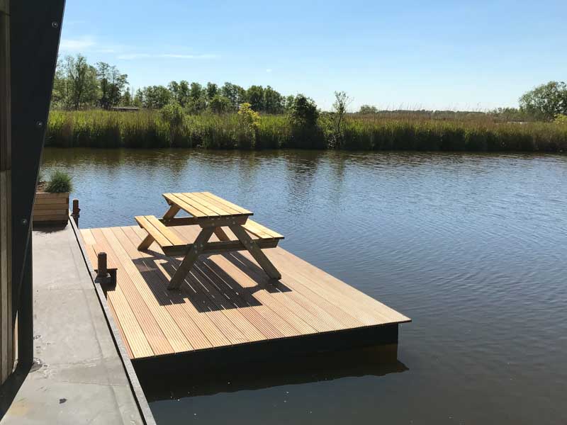 Op de vlonder is het heerlijk genieten aan de picknicktafel met mooie vergezichten van water, rietkragen, bootjes en de ondergaande zon. Je kunt het Dobberhuisje bereiken via de weg, maar echt een speciale belevenis is om aan te komen met een boot.