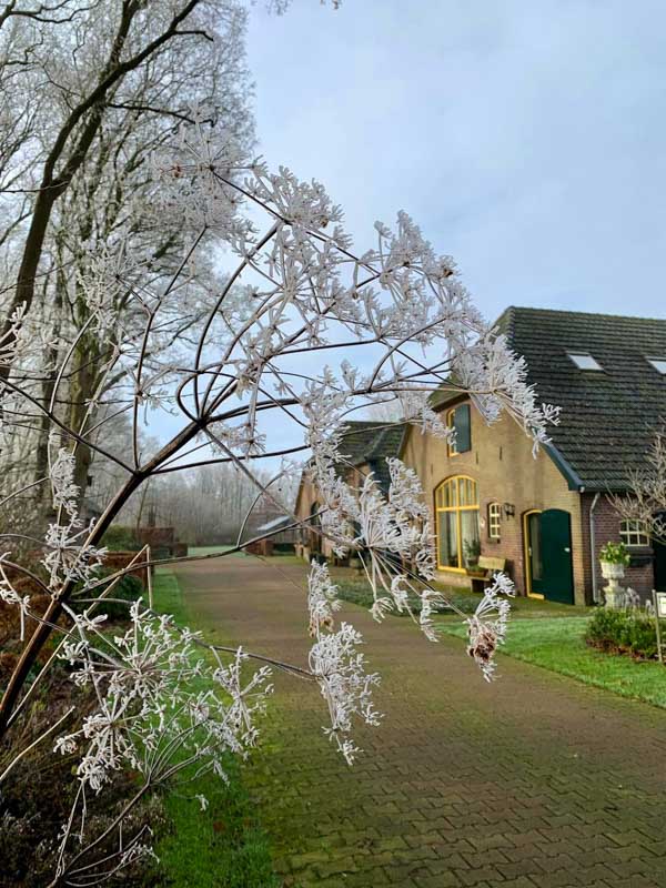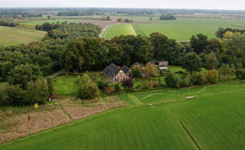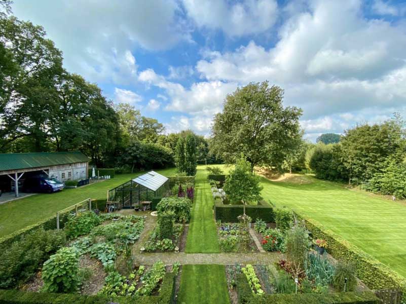 Marco en Jolanda zijn altijd druk met de grote tuinen rondom de boerderij. Veel fruitbomen, een pluktuin, heemtuin en poelen voor eigen wateropvang. De bomen en houtsingels worden gebruikt om de houtvoorraad op peil houden.