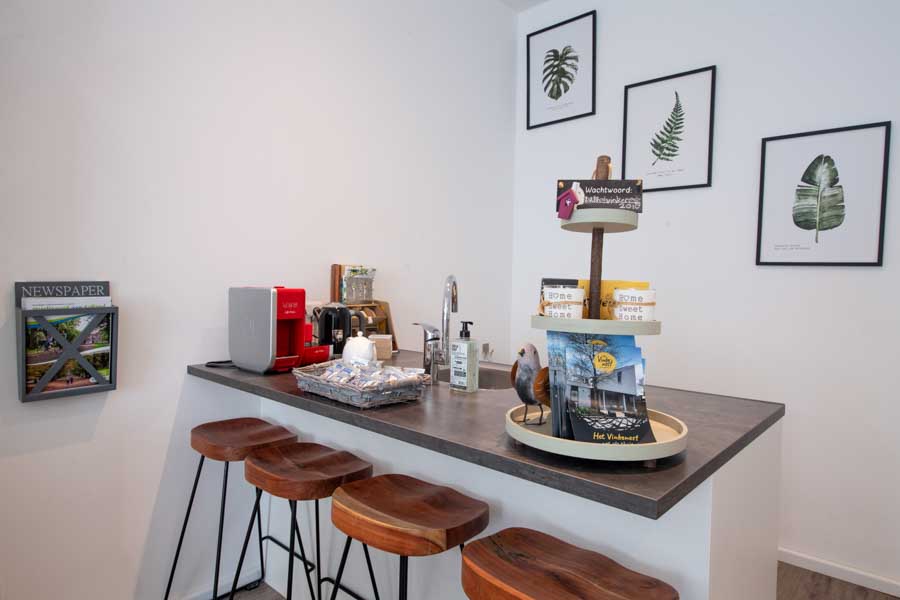 De B&B heeft twee luxe kamers “De Vink” en “Het Nest”, elk met een eigen badkamer. Ook is er een ruime huiskamer met een keukenblok. Hier wordt het ontbijt geserveerd en kun je wat drinken, lezen of tv kijken. Er staat altijd koffie, thee, vers fruit en wat voor de lekkere trek klaar. Ook is hier de patio waar je even lekker in de zon kunt genieten.