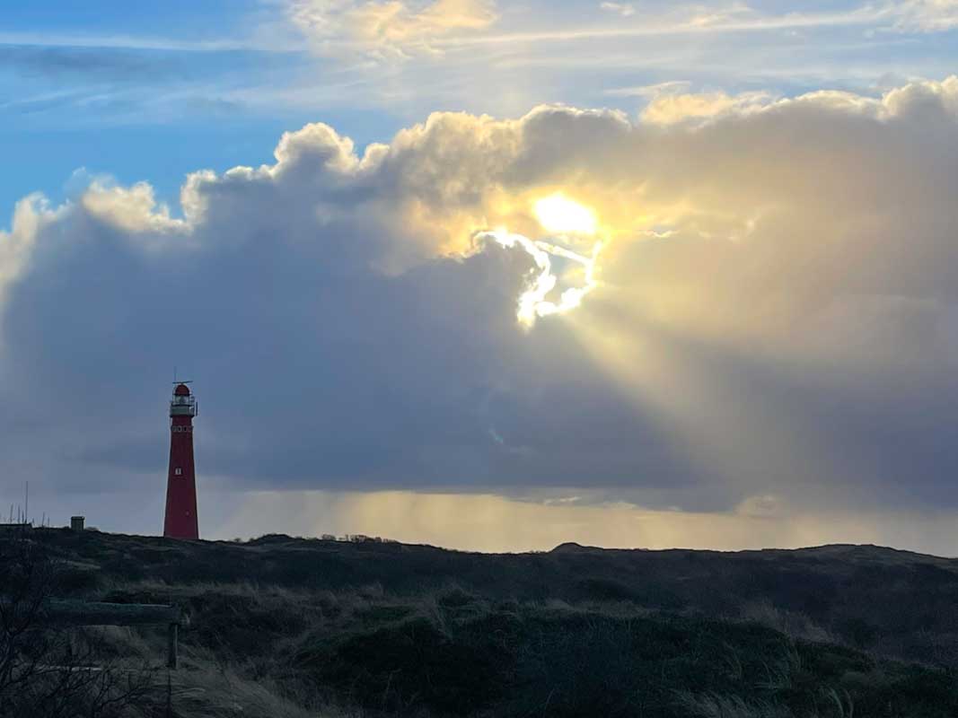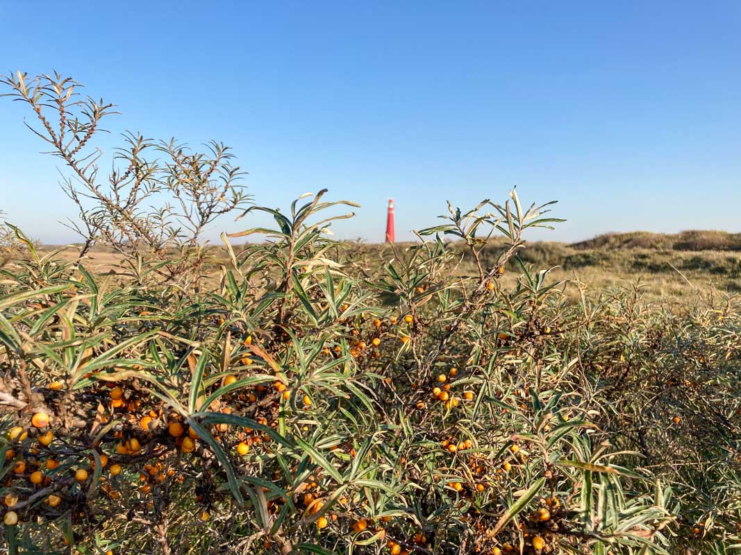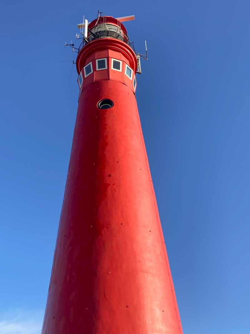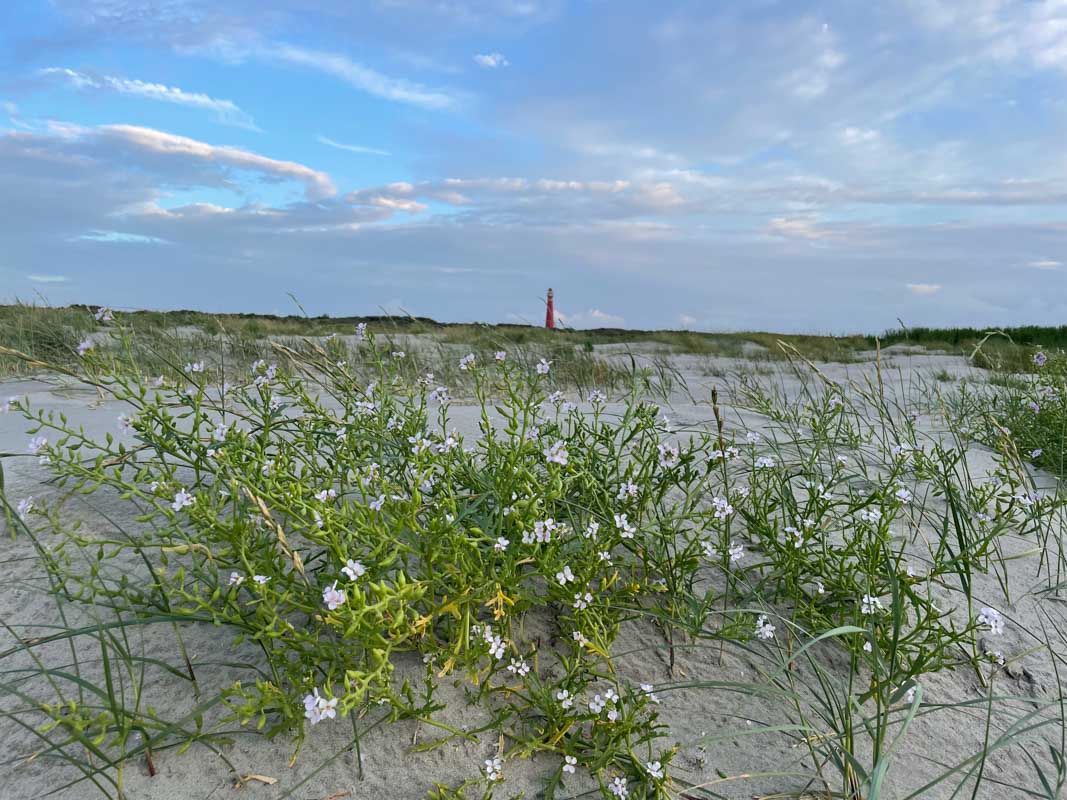 Vlakbij strand en de rode vuurtoren van Schiermonnikoog