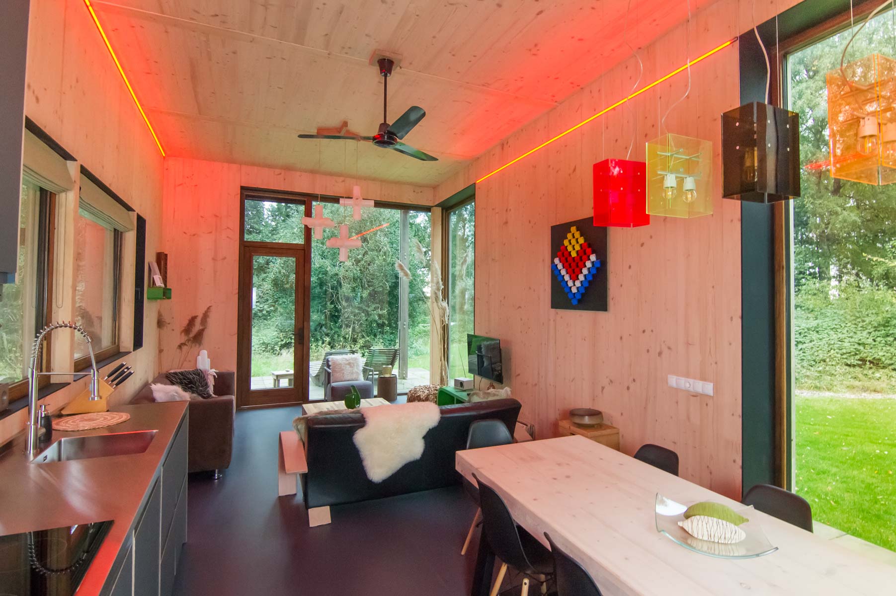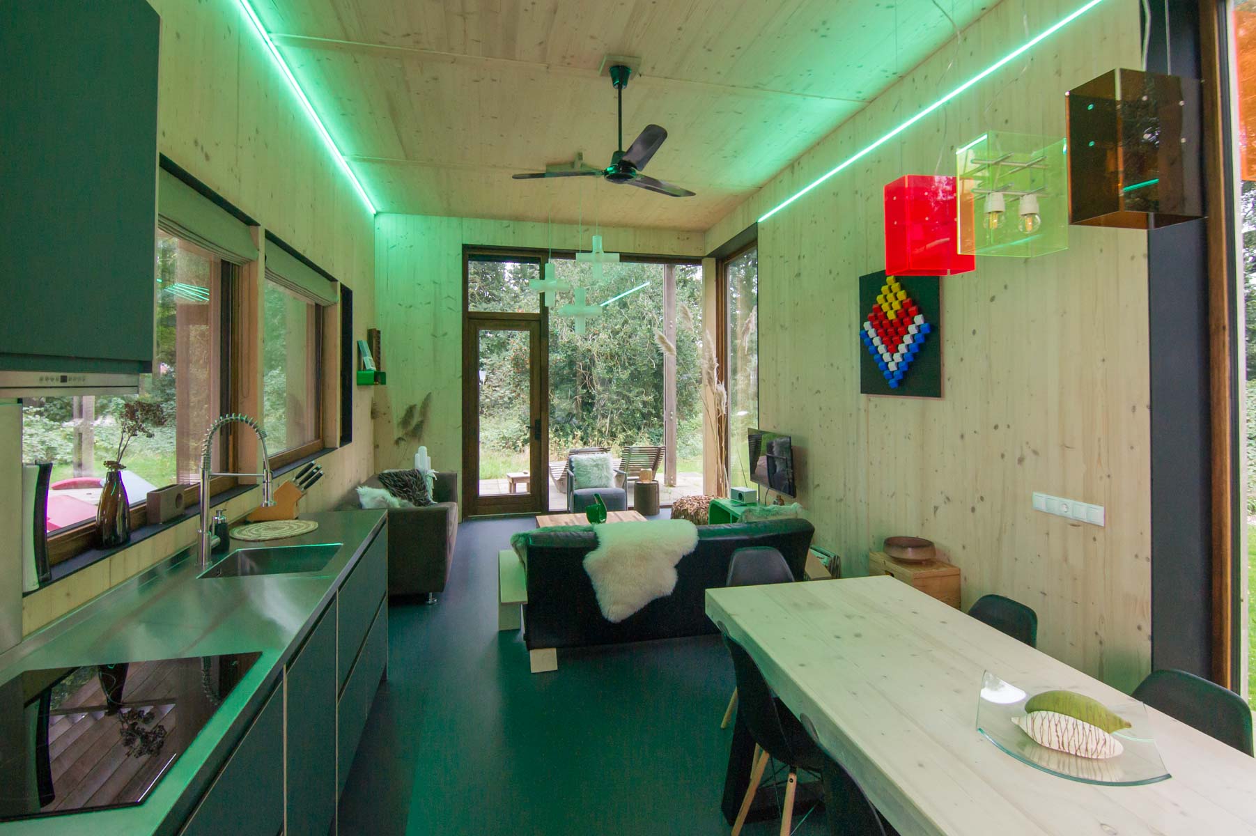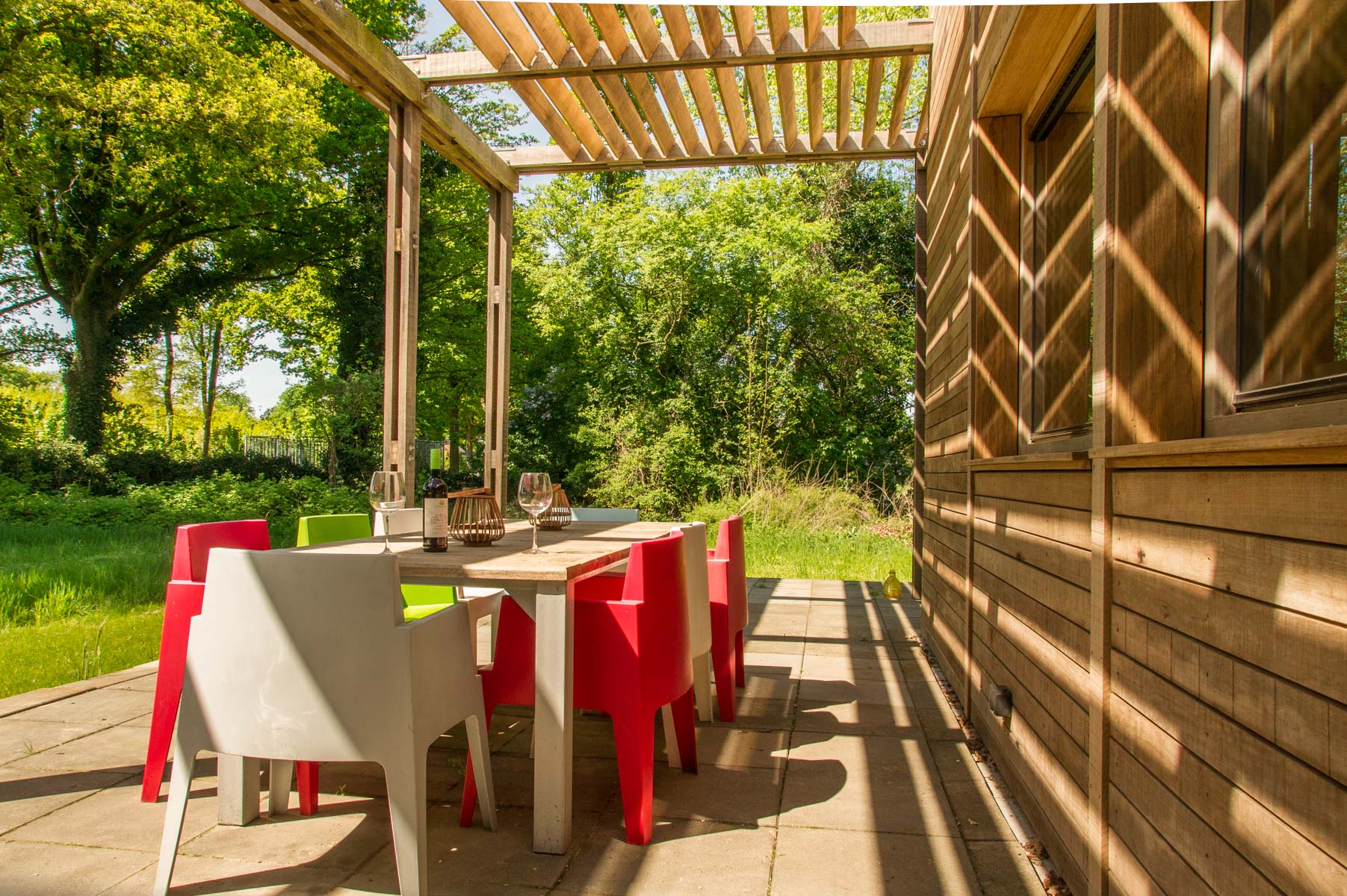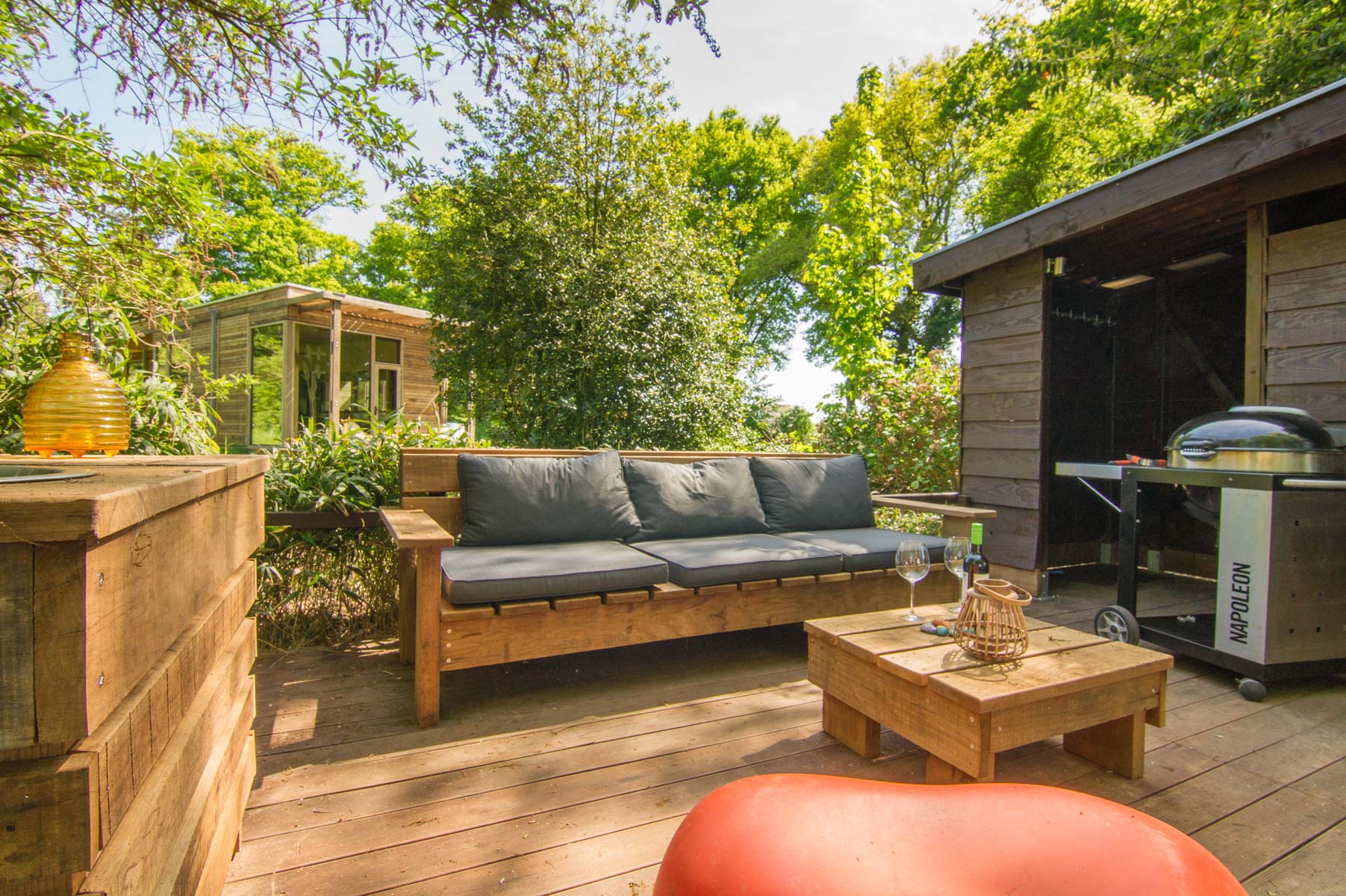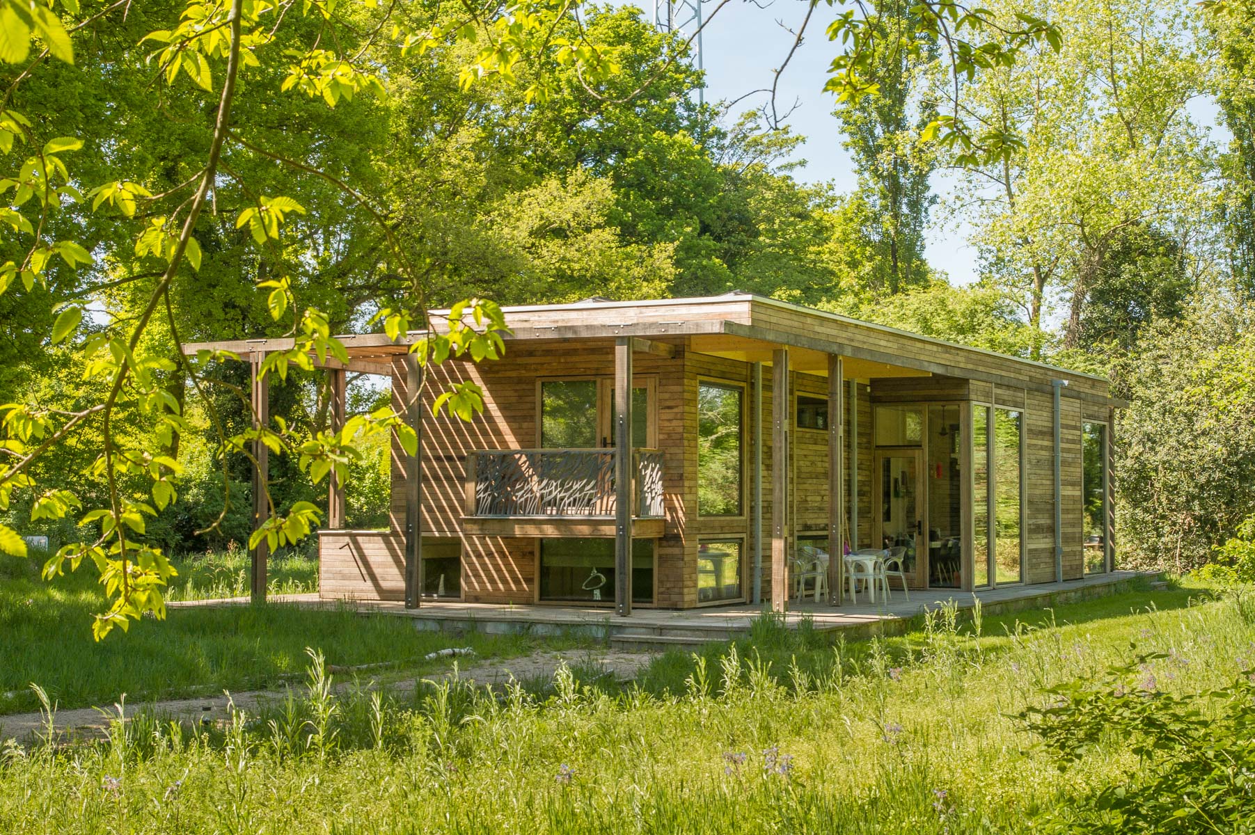 Een stijlvol eco paviljoen op een weelderige es
