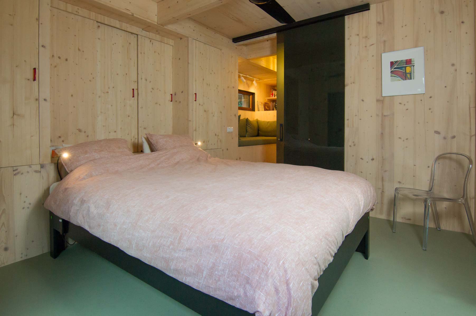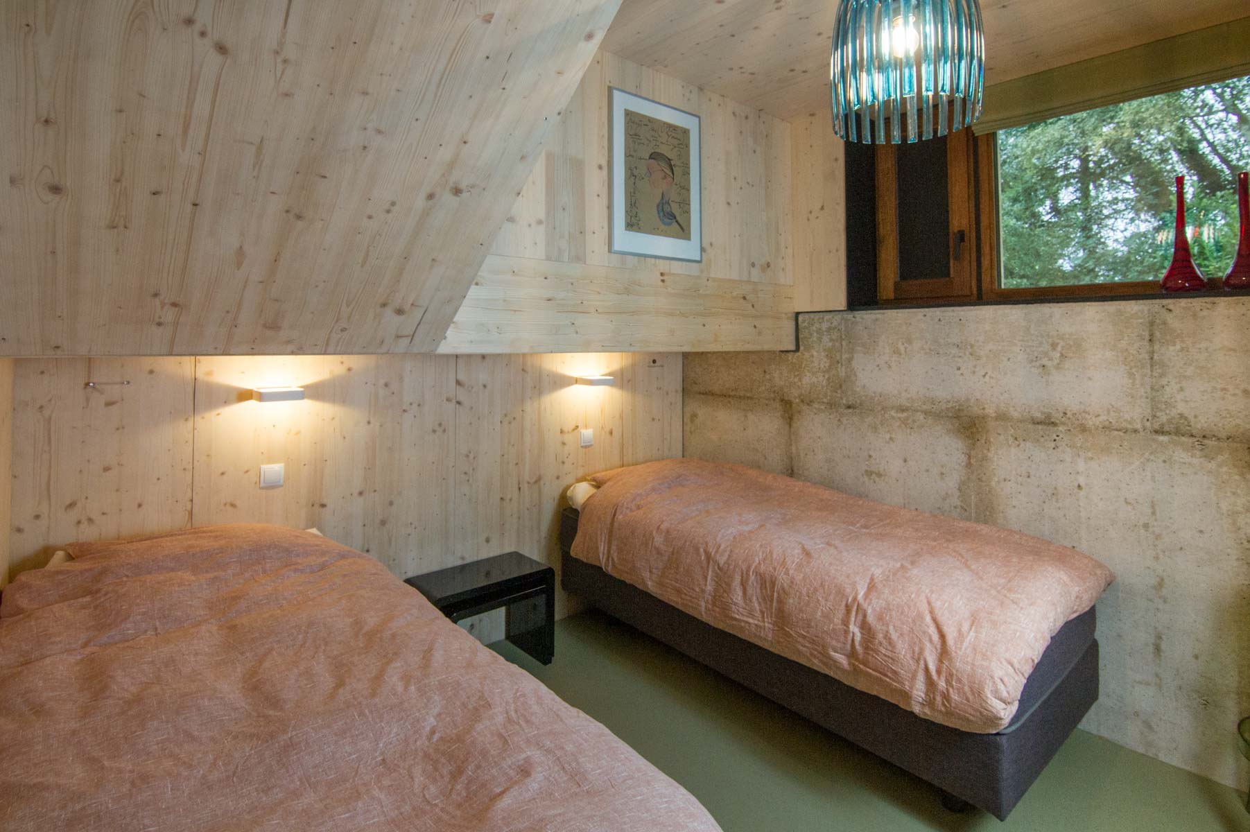 Er valt een zee van licht in het souterrain met twee ruime slaapkamers, een kleine badkamer en bijkeuken. In de grote slaapkamer komt een nis met daarin een opklapbaar stapelbed. Zo kan deze kamer in een handomdraai veranderd worden van een ruime tweepersoonskamer naar een slimme vierpersoonskamer.