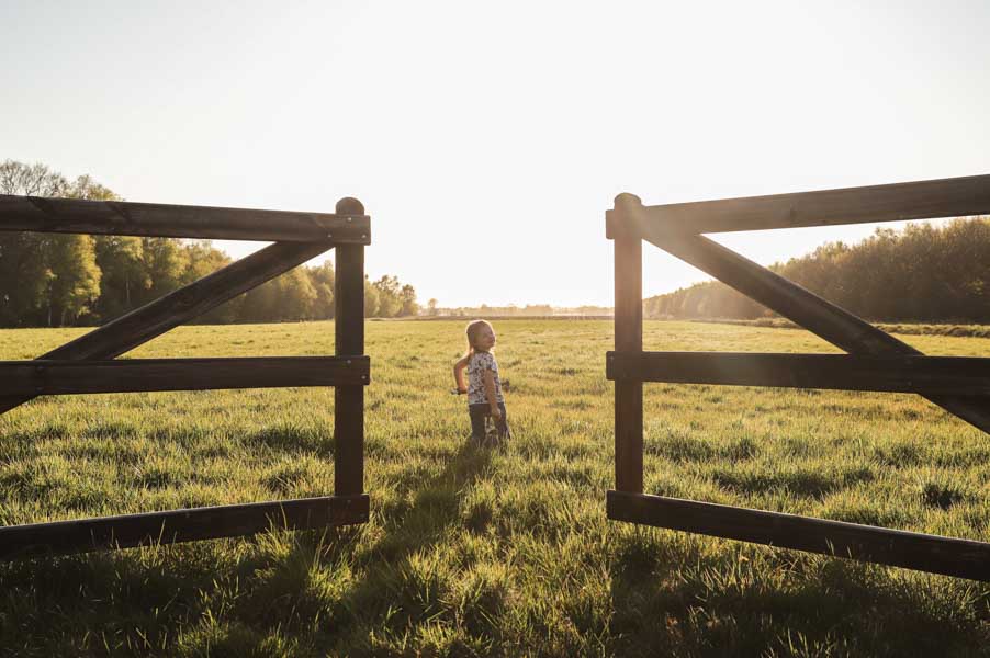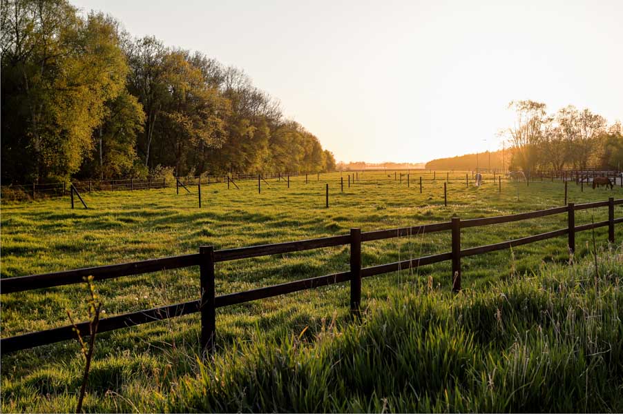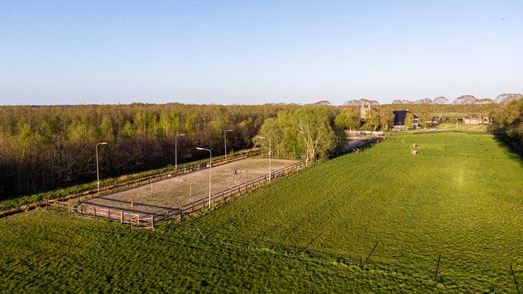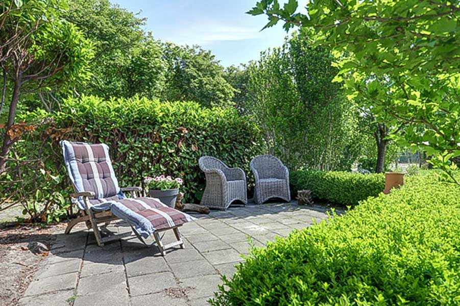 Buiten is er een ruime afgerasterde tuin met terras en picknicktafel. Op de boerderij worden nu paarden gehouden en gecoached.