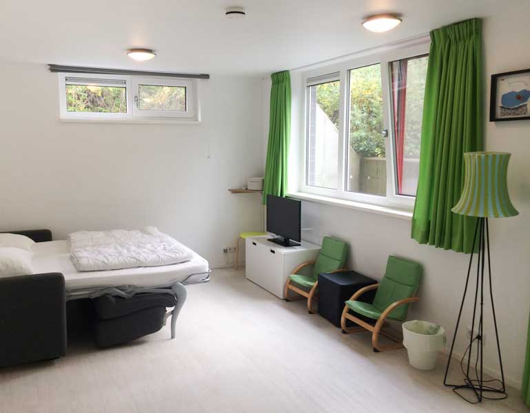 Op iedere etage is er een woonkamer met keukenblok, een slaapkamer en een badkamer. Het souterrain heeft ook nog een eigen buitendeur. Op de begane grond is optimaal rekening gehouden met mindervaliden. Op het balkon van de bovenverdieping kun je ‘s middags heerlijk van de zon genieten.